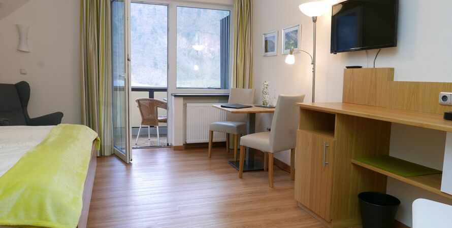 Wasserkocher, Flachbild SAT/TV, kostenfreies WLAN, ebenerdige Dusche/WC, Föhn und Kosmetikspiegel, Balkon